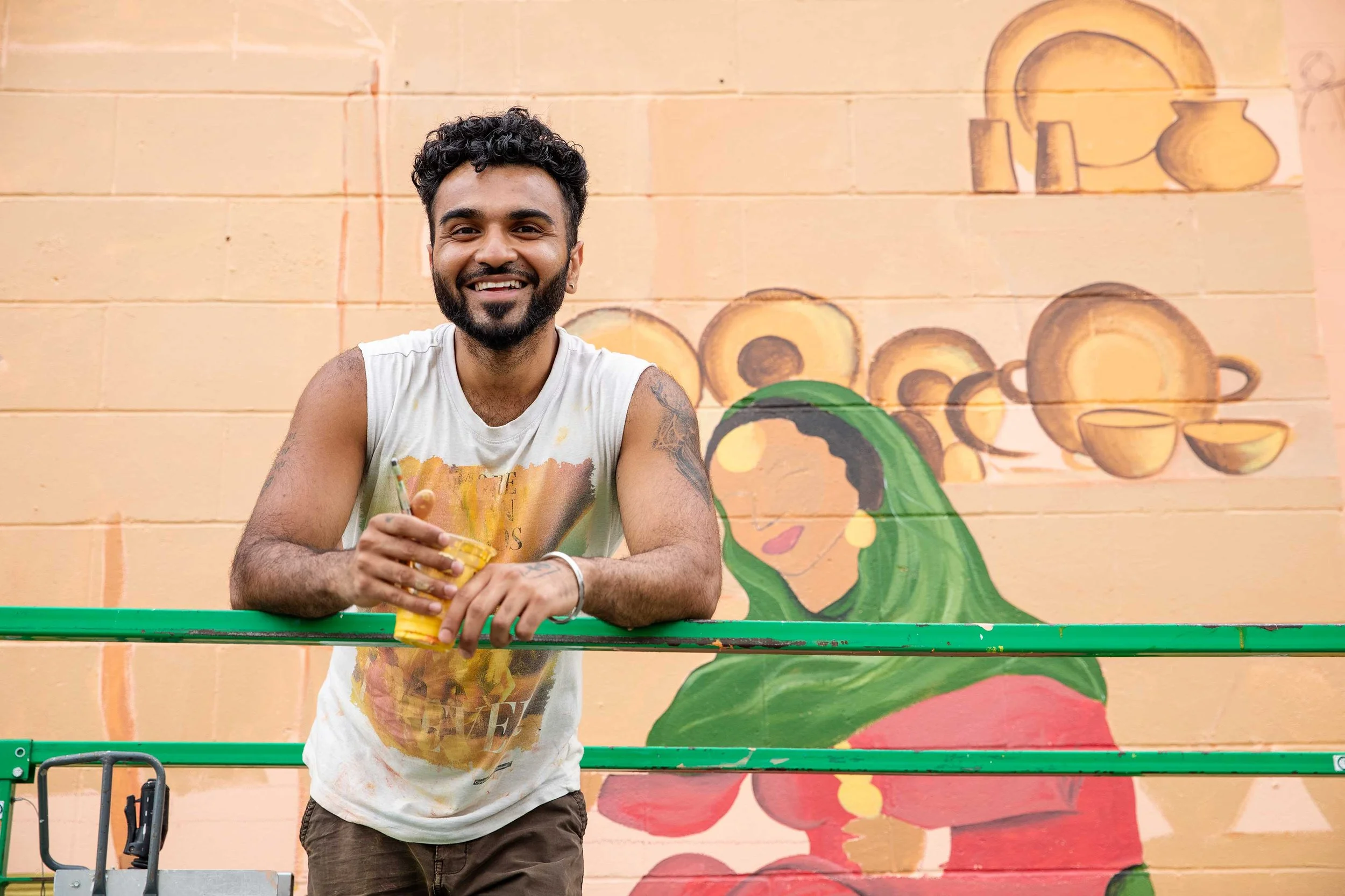 The mural quintessentially encapsulates a utopian moment in a Punjabi village household from that time of the year when the crops are ripe and ready to be harvested. However, it depicts more than just the joy of reaping the fruits of your labor. It’s about the taste of bliss found in the simplicity of life and how it evokes a universality.